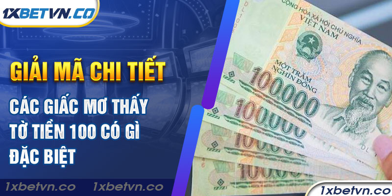 Tờ 100 là loại tiền do Chính phủ Việt Nam sản xuất và phát hành để trao đổi hàng hóa, vật tư và dịch vụ. Thông thường, khi ngủ bạn nhìn thấy hình ảnh tờ 100 nghìn đồng là điềm báo khá tốt. Tại nơi làm việc, bạn giải quyết được những vấn đề và lo lắng luôn cản trở bạn. Ngoài ra, các mối quan hệ xung quanh bạn sẽ đóng góp rất nhiều cho sự nghiệp của bạn.